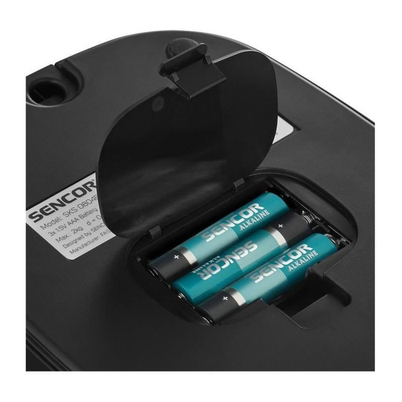 La balance de cuisine Sencor SKS 0804BK offre une précision de pesage exceptionnelle avec une capacité allant jusqu'a 2 kg. Équipée d'un écran LCD, d'une fonction tare et d'une graduation de 0,1 g, elle est idéale pour peser des ingrédients avec exactitude. Compacte et portable, elle est parfaite pour une utilisation a domicile ou en déplacement.