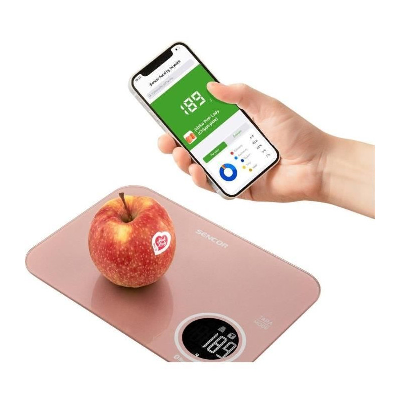 La balance de cuisine Sencor SKS 7075RS offre une capacité de pesée jusqu'a 5 kg avec une précision de 1 g. Équipée d'un écran LCD rétroéclairé, elle propose trois modes de pesée et une fonction TARA intelligente. Connectée a l'application Sencor FOOD, elle fournit des informations nutritionnelles détaillées pour un suivi alimentaire optimal.