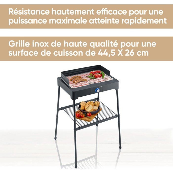 Barbecue électrique sur pieds - SEVERIN - PG8566 - 2200 W - Surface de cuisson 44,5 x 26 cm - Thermostat réglable - Noir