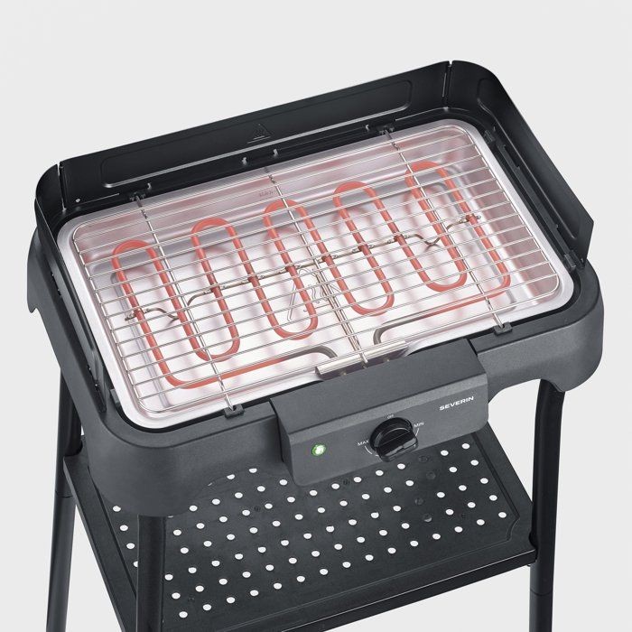 Barbecue électrique sur pieds - SEVERIN - PG8594 - 2000 W - Surface de cuisson 38 x 22 cm - Thermostat réglable - Noir