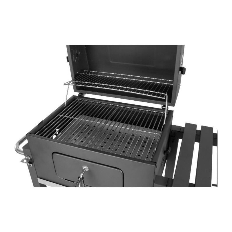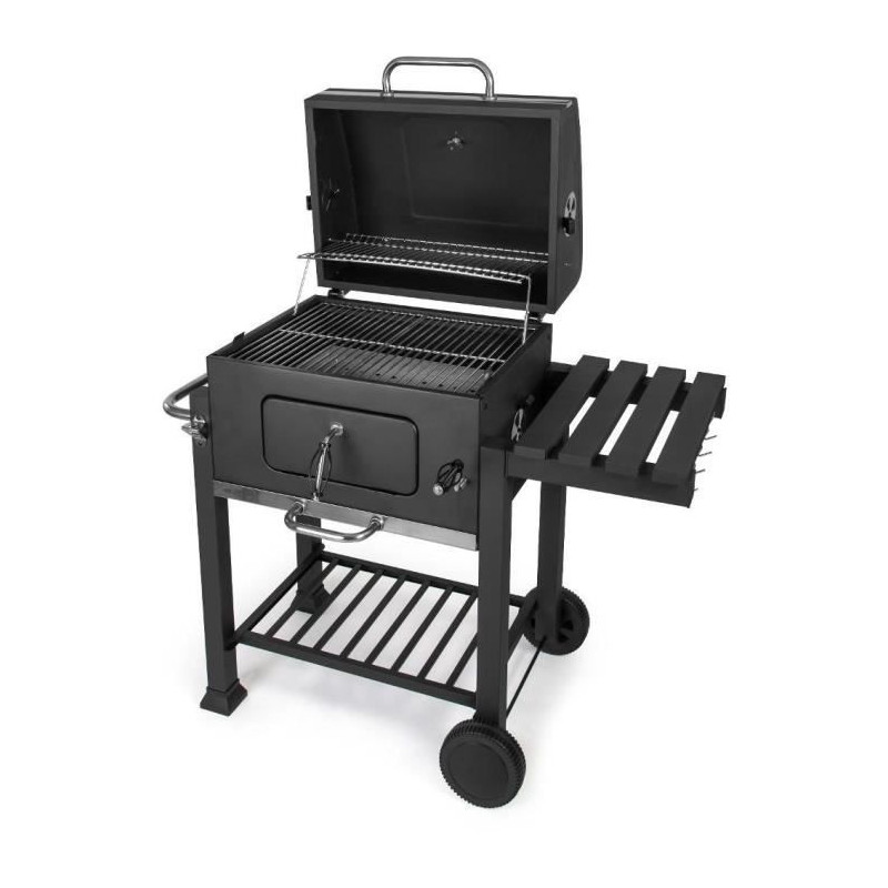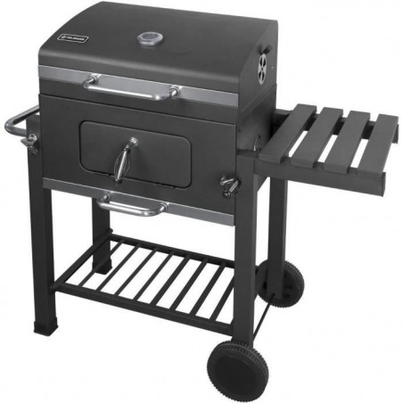 Découvrez le barbecue au charbon de bois Fieldmann FZG 1008, idéal pour vos grillades estivales. Avec une surface de cuisson de 55,6 x 41,5 cm, un thermometre intégré et des grilles chromées, il offre confort et performance. Sa hauteur de cuisson réglable et ses roulettes facilitent son utilisation et son déplacement.