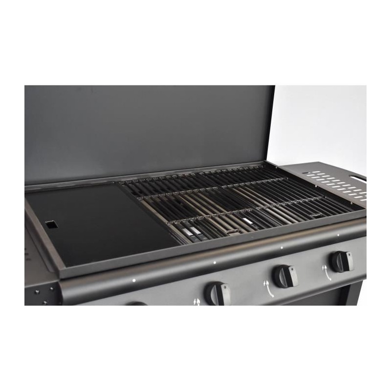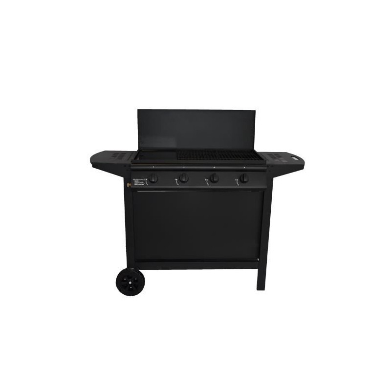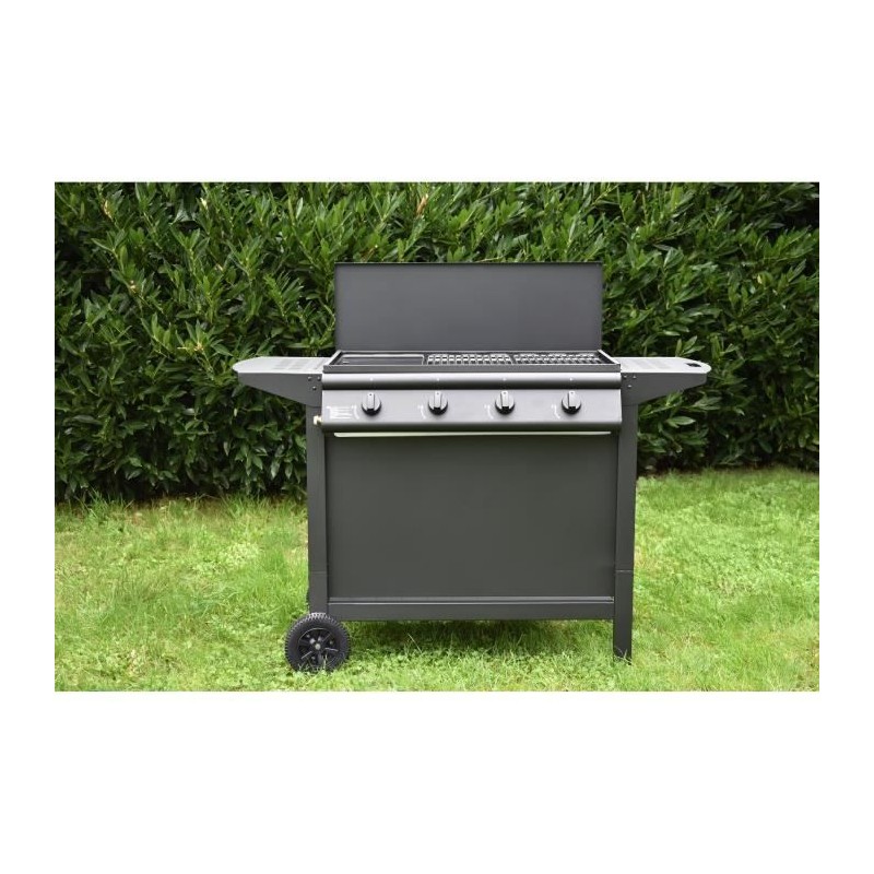 Barbecue a gaz - GRILL GARDEN - Noir - 4 brûleurs - Avec capot de protection - Allumage Piezo électrique