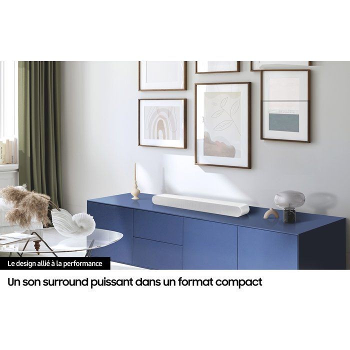 Découvrez la barre de son Samsung HW-S67D/XE, un concentré de puissance et d'élégance conçu pour transformer votre expérience audiovisuelle. Grâce a son systeme 5.0 canaux, ses 7 haut-parleurs intégrés et ses technologies audio avancées comme le Dolby Atmos sans fil et le DTS Virtual:X, elle vous plonge au coeur de chaque scene avec un son 3D immersif. Compacte, design et pensée pour s'intégrer parfaitement dans votre intérieur, elle s'harmonise idéalement avec les TV Samsung via Q-Symphony et profite d'un calibrage automatique grâce au SpaceFit Sound pour un rendu toujours optimal. La connectivité ultra-complete (Wi-Fi, Bluetooth, HDMI eARC, Chromecast, AirPlay 2) garantit un partage instantané de vos contenus, tandis que l'assistant vocal Alexa facilite le contrôle au quotidien. Compatible avec les enceintes arriere SWA-9200S et le caisson sans fil SWA-W510, la HW-S67D évolue selon vos envies pour créer une véritable ambiance cinéma a la maison. Livrée avec télécommande, accroche murale et câble HDMI, elle offre une installation rapide et une expérience sonore premium dans un format compact.