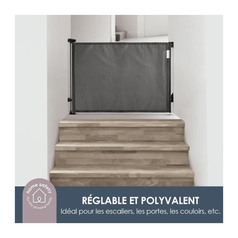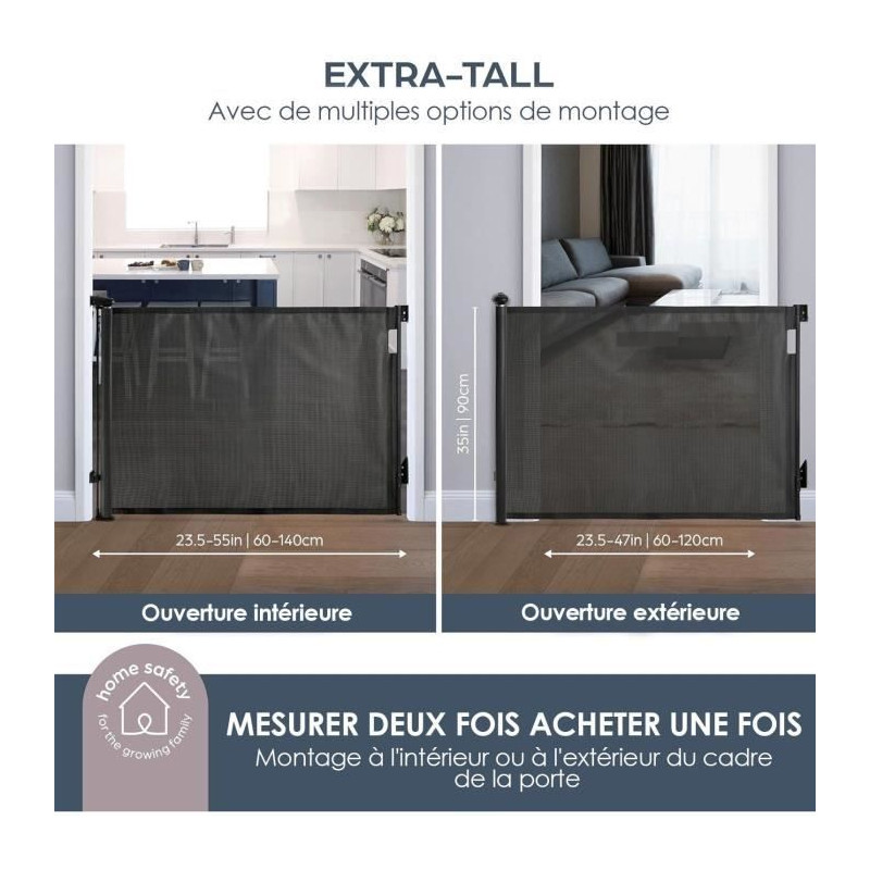 Extra high retractable safety barrier - DREAMBABY - 60 to 140 cm H90 cm - Black