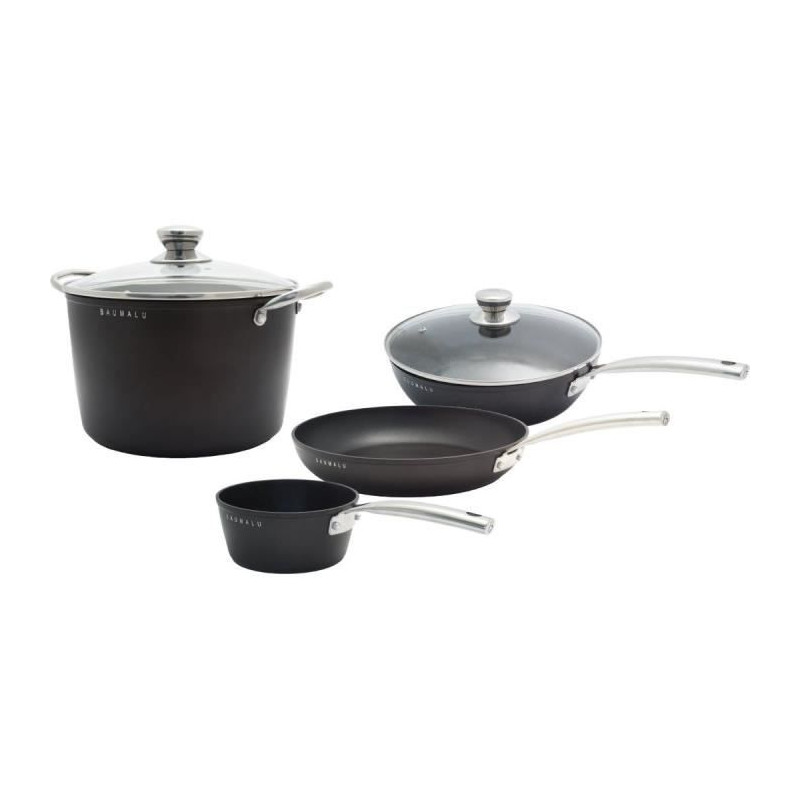 Batterie de cuisine - Tous feux dont induction - Baumalu - Aluminium forgé - Anti-adhésif - 4 pieces - Noir