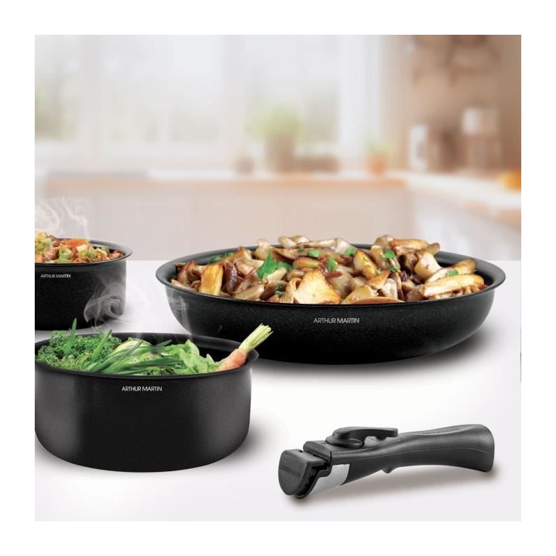 Batterie de cuisine induction - Arthur Martin - AM558 - Aluminium - 20 pieces - Poignée amovible - Tous feux dont induction