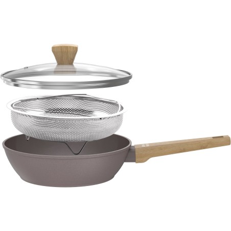 Sublimez vos recettes avec la sauteuse Arthur Martin AM9910 Ø24 cm. Son revetement céramique antiadhésif et son corps en aluminium assurent une cuisson homogene et sans effort. Livrée avec couvercle et panier inox, elle est idéale pour varier les modes de cuisson. Compatible tous feux dont induction, elle se distingue par son design taupe raffiné.