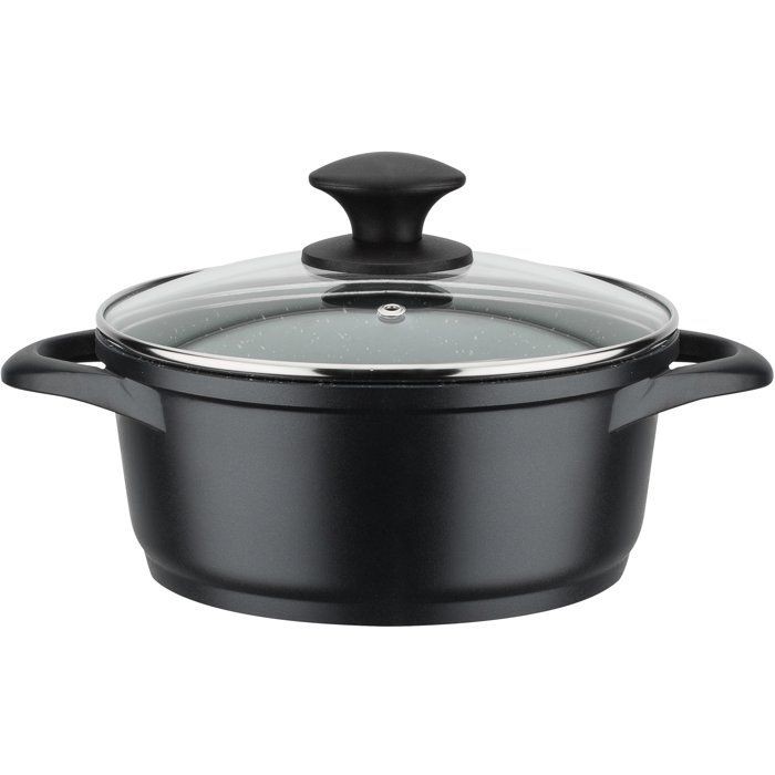 Batterie de cuisine - Tous feux dont induction - GSW - GOURMET GRANIT - Fonte d'aluminium massive - 7 pieces - Sans PFAS - Noir