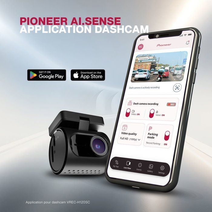 Dash Cam - PIONEER - VREC-H120SC - 1 caméra - 1,5k - Vision 120° - Aplication ai.sense - Noir