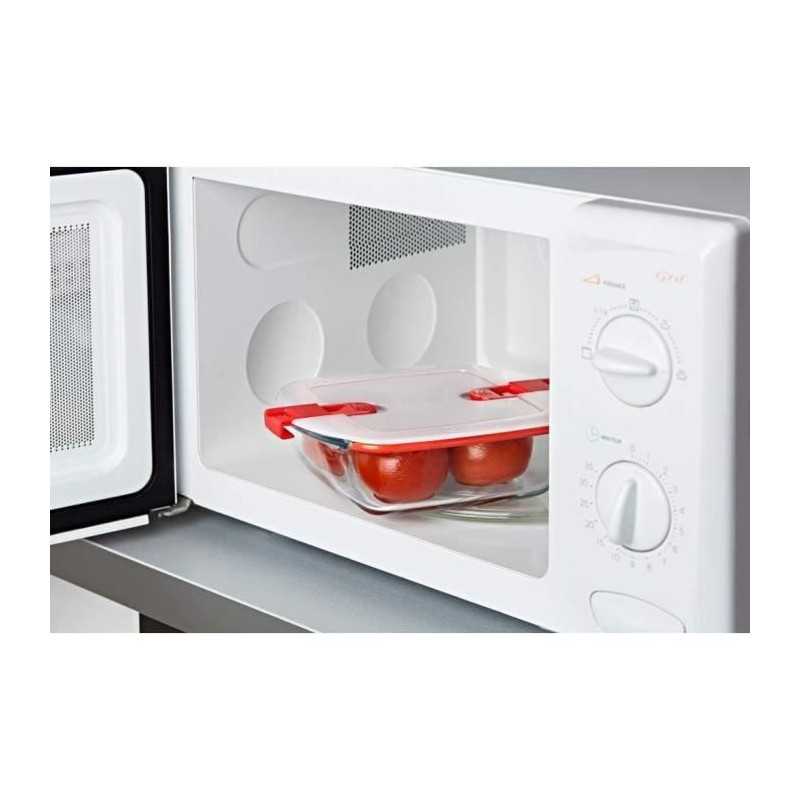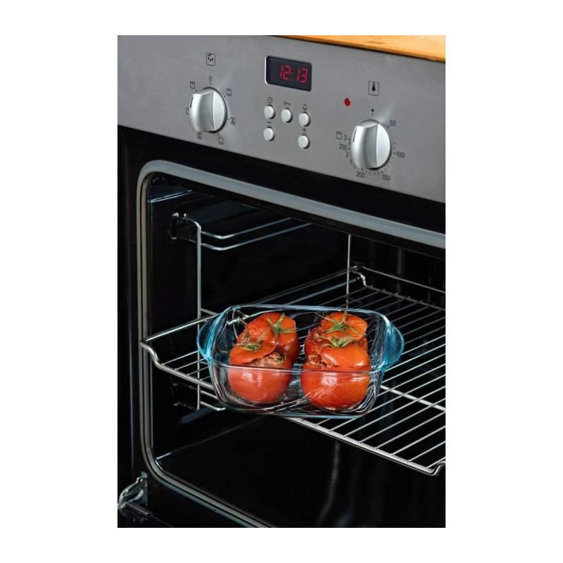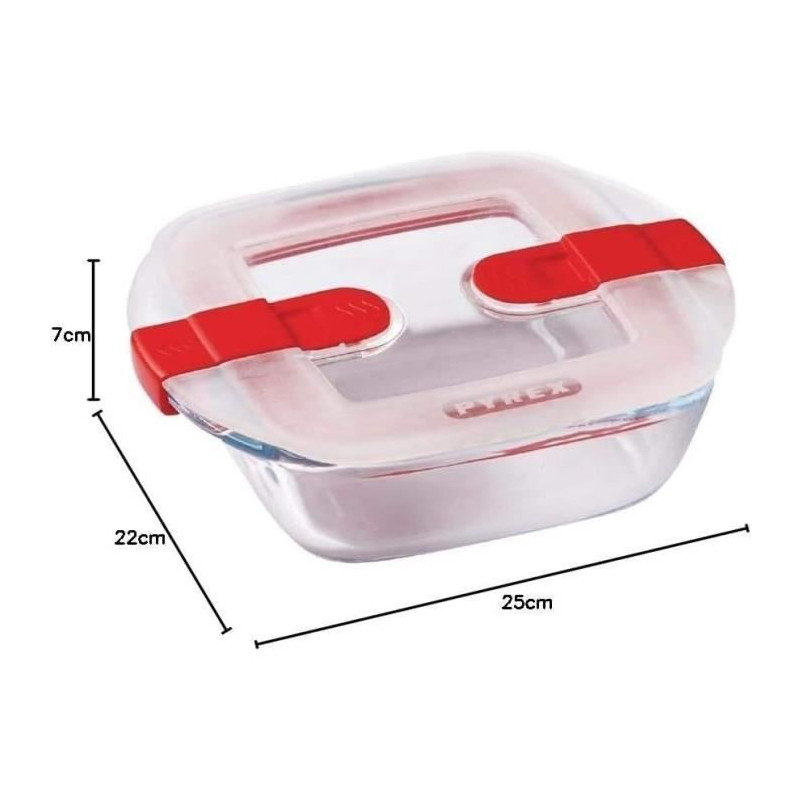 Square glass dish with special cook & heat microwave cover: 25x22cm Borosilicate glass base: resistant to extreme temperatures, from -40 ° C to + 300 ° C, and to thermal shocks up to 220 ° C, for baking (without lid), store in the refrigerator and freezer and warm