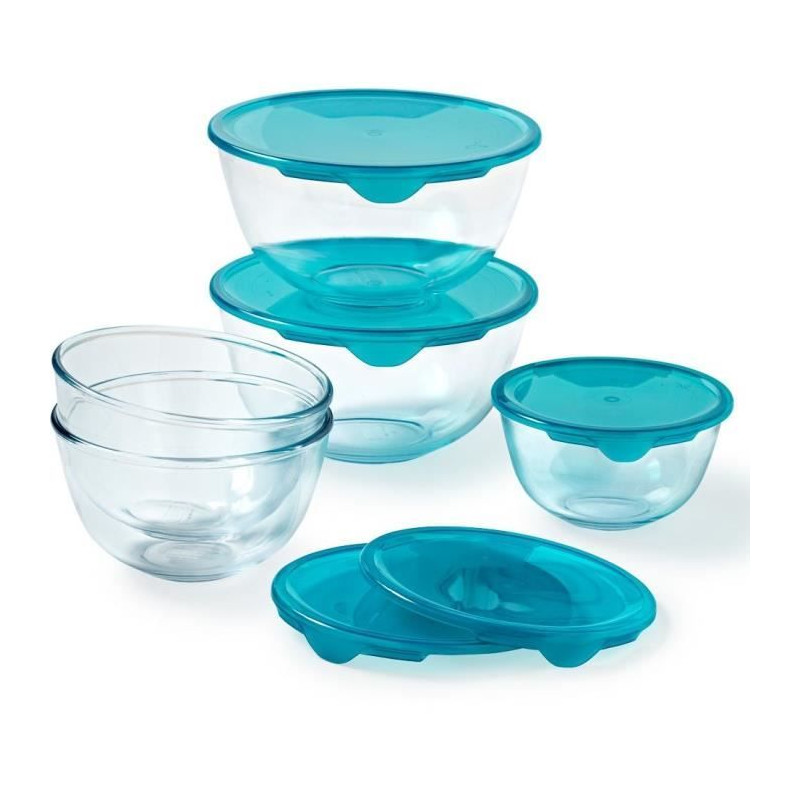 Lot de 5 jattes avec couvercle - PYREX - 1x 0,5L + 2x 1L + 2x 2L