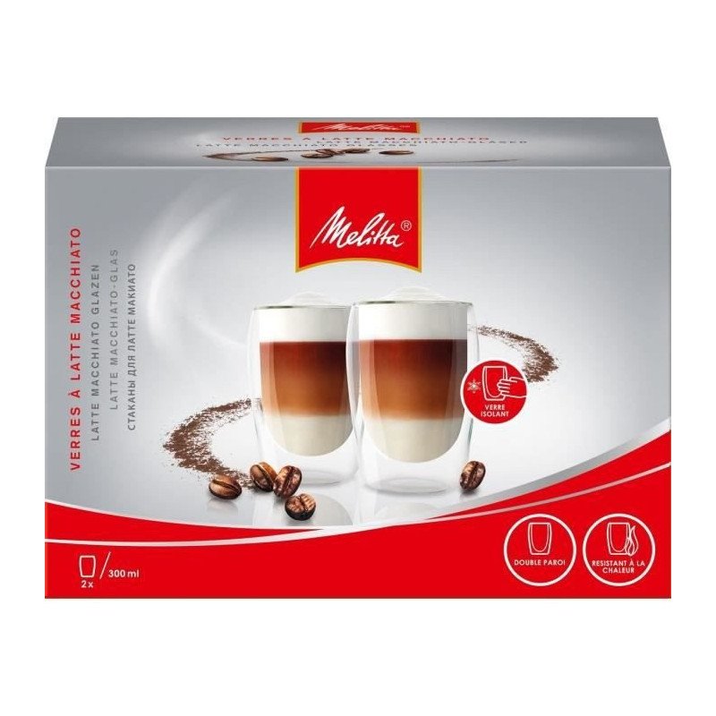 MELITTA Lot de 2 verres en borosilicate pour latté Machiatto 300 ml transparent