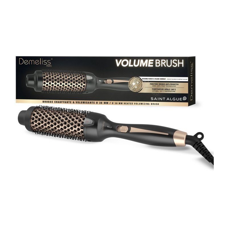 La brosse chauffante VOLUME BRUSH de Demeliss SAINT ALGUE diffuse une chaleur uniforme pour offrir un brushing volumineux et harmonieux. Grâce a sa fonction ionique, elle réduit l'électricité statique, discipline les frisottis et apporte une brillance soyeuse. Ses picots de qualité glissent facilement dans les cheveux pour apporter du volume des la racine. Dotée d'une température unique et idéale de 180°C, la brosse chauffe rapidement et garantit un coiffage efficace tout en respectant la fibre capillaire. Sa conception ronde permet de soulever les racines, de créer du mouvement sur les longueurs et de réaliser un brushing naturellement galbé. Parfaite pour donner du volume, modeler ou rafraîchir votre coiffure en quelques minutes.