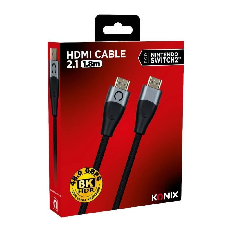 Câble HDMI 2.1 - KONIX - Nintendo Switch 2 - Compatibilité 4K et 8K - Nylon tressé - Longueur 1,8 m - Noir