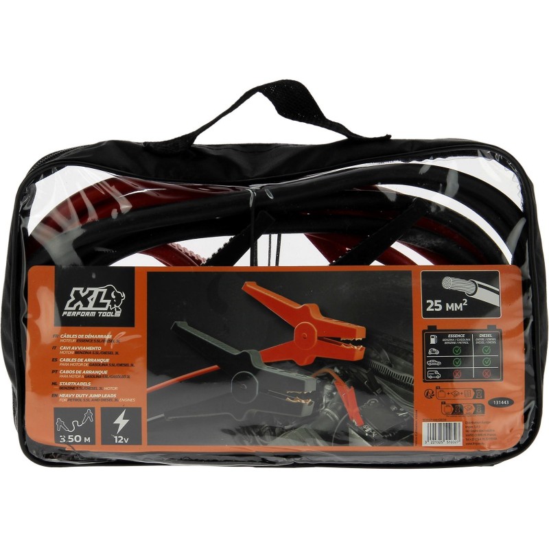 XLPT Cable 25mm2 - Starter cable - Cable length: 350cm - Elements delivered: 2 start cables 25mm² - 10mm² starter cable: starter cables designed for troubleshooting petrol engines with a maximum displacement of 5.5 l Diameter of cables: 25mm², Cable length: 3.5m
