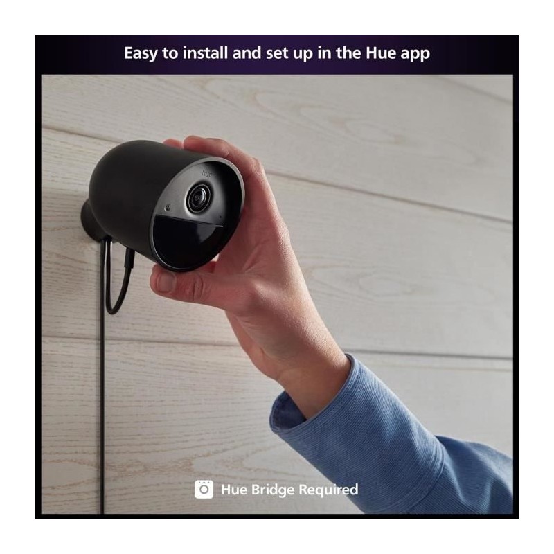 Ce câble USB d'extension noir de 5 m est conçu pour les caméras Philips Hue Secure. Idéal pour une utilisation en extérieur, il permet d'augmenter la distance entre la prise murale et votre caméra, tout en se fixant a un bloc d'alimentation Philips Hue Low-volt.