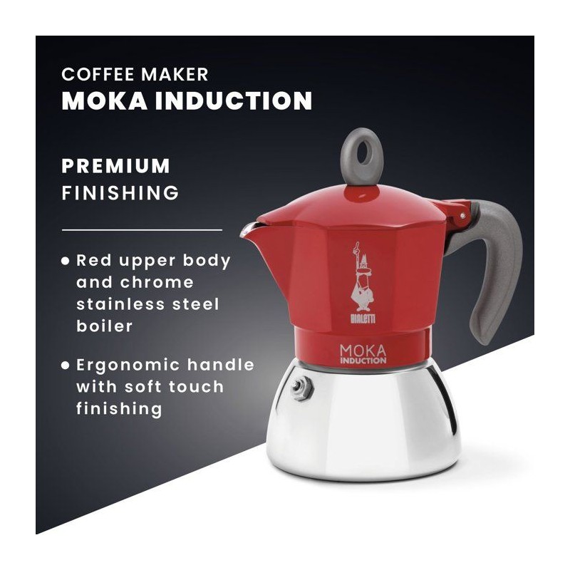 Cafetiere italienne - BIALETTI - MOKA Induction - 2 tasses - 100 ml - Rouge