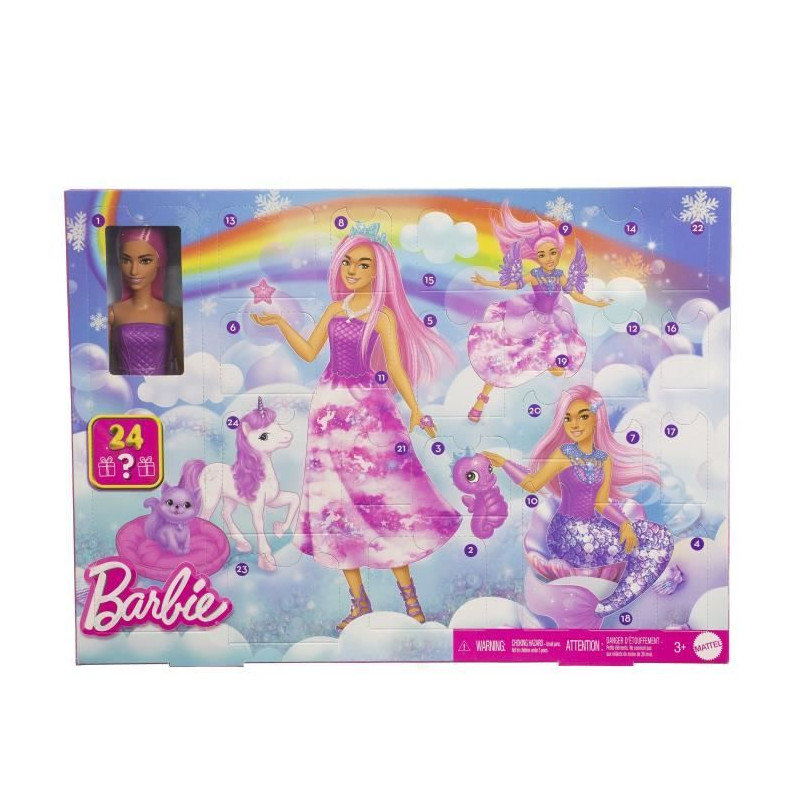 Découvrez le calendrier de l'Avent Barbie avec 1 poupée mode, 24 surprises, 3 animaux et divers accessoires. Parfait pour les enfants a partir de 3 ans, ce lot en plastique promet des moments féériques et créatifs.