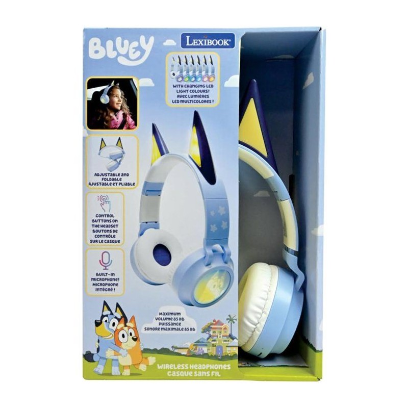 LEXIBOOK - Casque lumineux pliable Bluetooth et filaire avec un design 3D de l'univers Bluey avec limitation du volume
