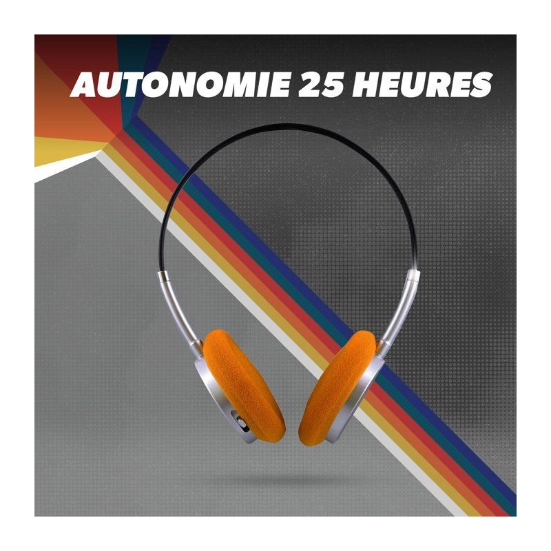 Quand le vintage rencontre le modernisme, voici la collection ORIGIN : l'héritage du casque baladeur des années 1980 et 1990, mélangé a la technologie sans fil des années 2020. Un objet emblématique d'une époque, d'une génération, d'un mode de vie. Un style unique et inimitable. Une maniere de vivre la musique, avec passion. Le casque ORIGIN offre tous les codes esthétiques du célebre casque baladeur, véritable phénomene des dernieres décennies du 20 Siecle. Utilisez ce casque sans fil grâce a la connexion Bluetooth. Sa batterie offre une autonomie allant jusqu'a 40 heures. Profitez des commandes intégrées pour gérer votre musique, les pistes de lecture, le volume ou bien utilisez le micro kit mains-libres pour passer vos appels. Redécouvrez vos morceaux les plus iconiques baladez-vous dans les rues de votre ville ou dans les parcs, comme dans les quartiers de New-York en 1985. La collection ORIGIN, c'est le retour d'une époque dorée, celle d'un mode de vie libre, centré sur la musique.