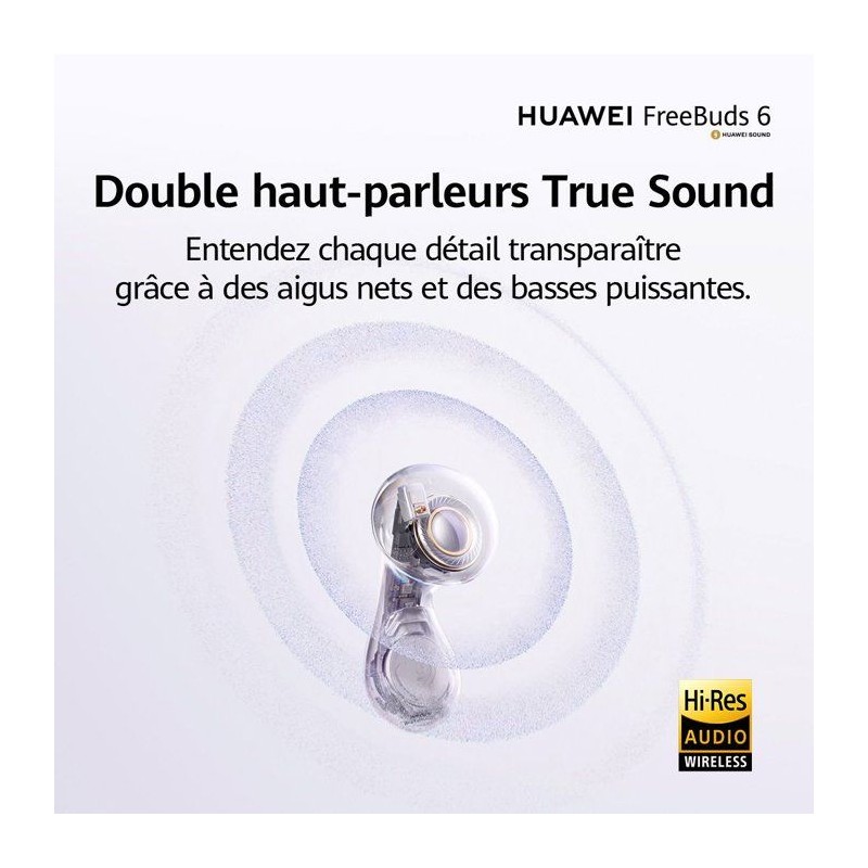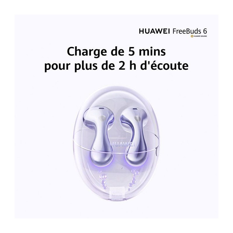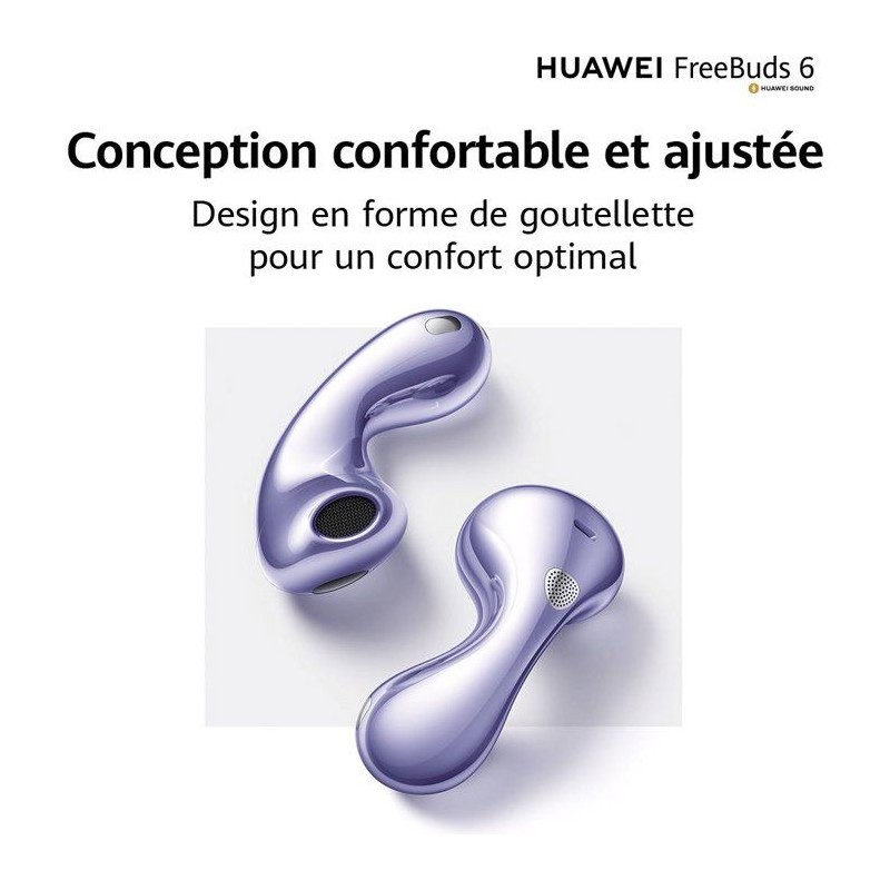 Élégants et minimalistes, les FreeBuds 6 offrent un son équilibré et un confort discret. Leur autonomie généreuse vous accompagne du matin au soir avec simplicité.