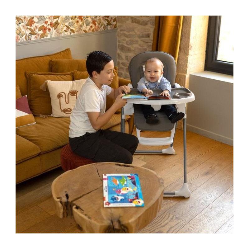 Chaise haute NANIA BIANCA - 6 mois a 36 mois - Dossier inclinable - Hauteur réglable - Pliage compacte - Gris