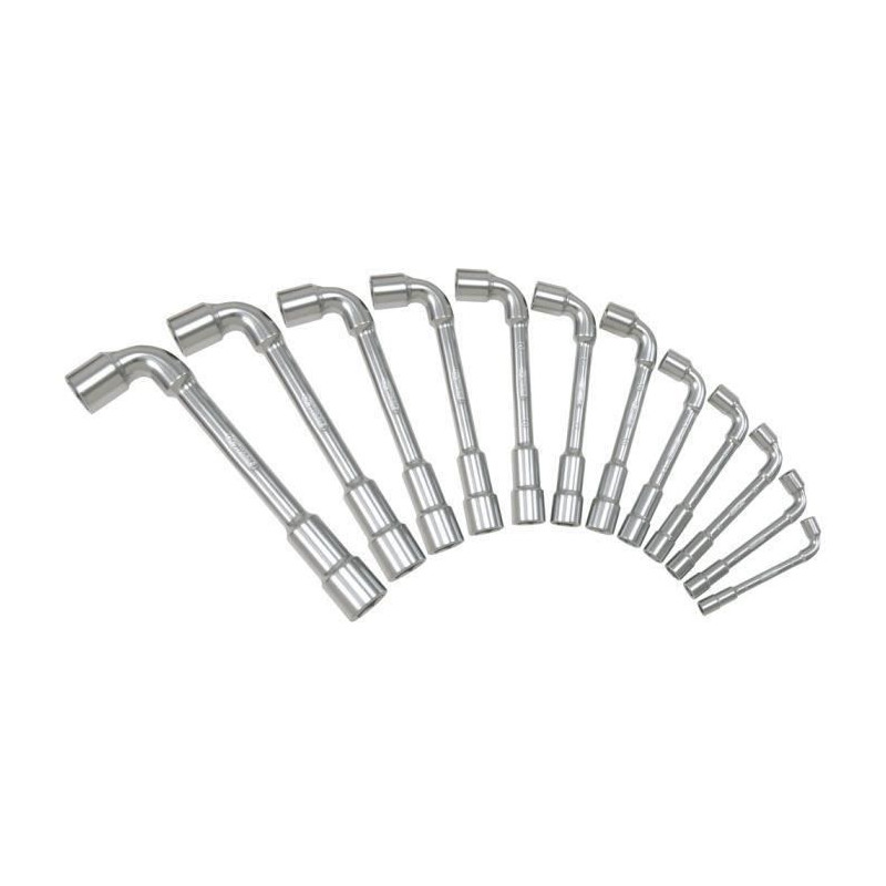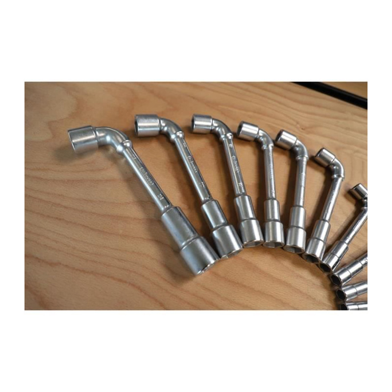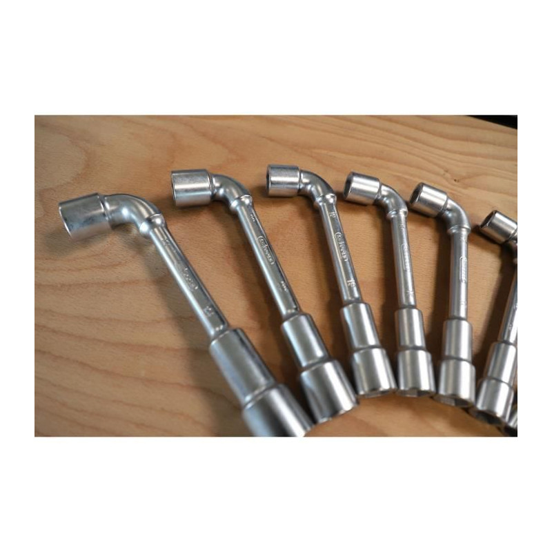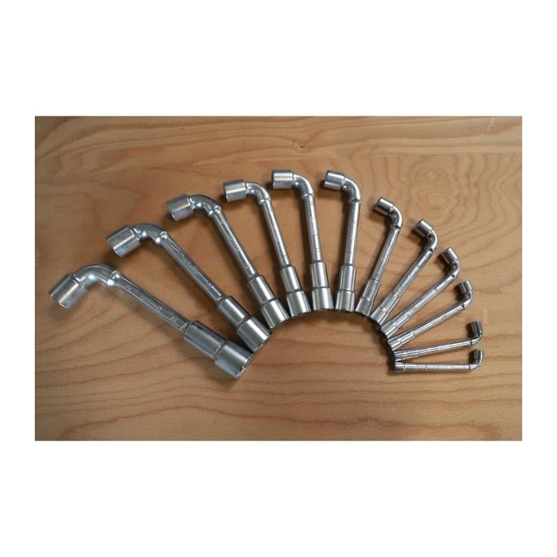6 pans. Tete coudée a 90°. Finition chromée. Chrome Vanadium.