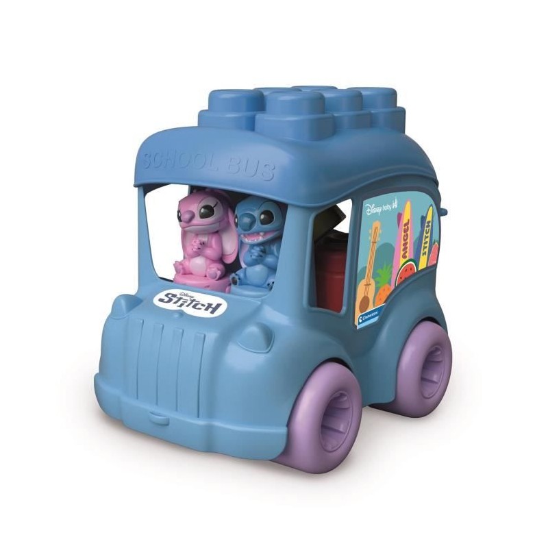 - Un adorable bus contenant 6 cubes Clemmy et 2 amusants personnages. - Les cubes Clemmy peuvent etre empilés sur le toit du bus. - Stitch et Angel accompagnent les tout-petits a travers des aventures amusantes !