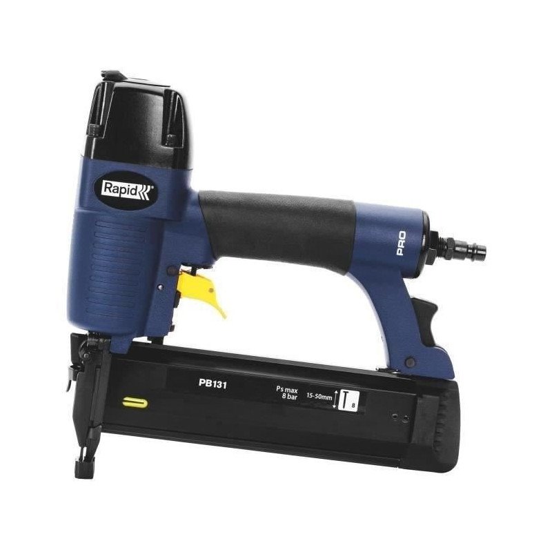 RAPID Cloueur pneumatique PRO PB131 pour clous N°8 (15-50 mm). Cloueur pneumatique professionnel conçu pour une utilisation réguliere et particulierement pour une cadence importante. Idéal pour la pose de panneaux de bois, les cadres de portes, les lames de terrasses et la menuiserie.