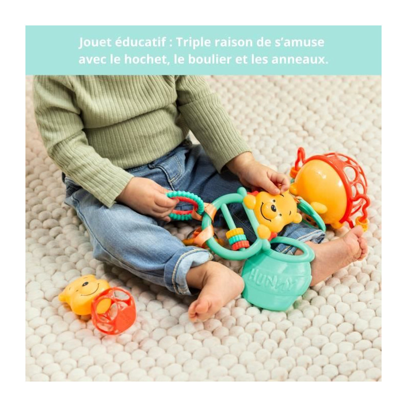 Célébrez 100 ans d'amitié, de chéri et du vieil ours idiot préféré de tous avec le coffret cadeau Disney Baby Winnie l'ourson Silly Ole Bundle de Bright Starts ! Conçu avec soin pour engager et divertir votre tout-petit tout au long de son parcours de développement précoce, il comprend cinq jouets sensoriels pour bébé sur le theme de Winnie l'ourson : un jouet d'activité, un Oball, un hochet pour bébé, un anneau de dentition et des cartes flash. Cet ensemble regorge d'opportunités ludiques pour favoriser la croissance de bébé, notamment la stimulation auditive, la préhension en pince et le développement de la motricité fine ! De plus, le jouet de dentition en pot de miel apaise les gencives douloureuses pendant la période de poussée dentaire. Parfaits a la fois pour le jeu et le confort, ces jouets, mettant en vedette le charme intemporel de Winnie l'ourson, captiveront l'imagination de votre tout-petit tout en soutenant les étapes importantes. Léger et facile a emporter en déplacement, vous pouvez ajouter cet ensemble a votre collection de jouets de transport et de jouets de poussette. Faites découvrir a bébé le monde passionnant de Winnie l'ourson et ajoutez une pincée de magie nostalgique pour les parents