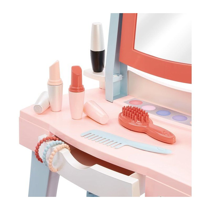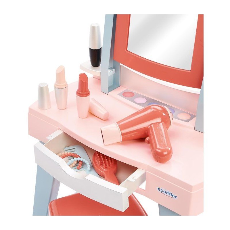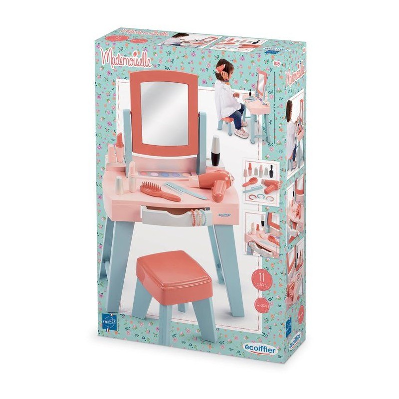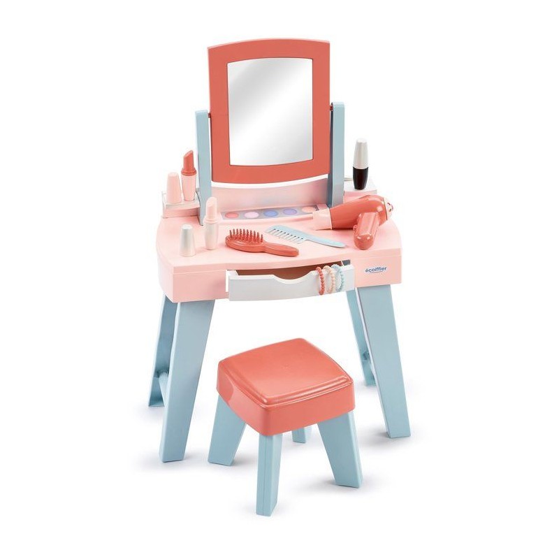Avec Ma premiere coiffeuse ECOIFFIER, les tout-petits de 12 a 36 mois découvrent les joies de la mise en beauté. Dotée d'un miroir, d'un tabouret et d'un tiroir de rangement, elle comprend 11 accessoires : maquillage, brosse, peigne, seche-cheveux et bracelets. Son design coloré et ergonomique favorise les jeux d'imitation et stimule la créativité. Fabriquée en France, elle est idéale pour développer l'autonomie et la coordination des jeunes enfants. Un univers de beauté a leur portée !