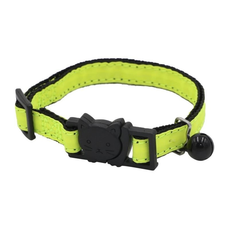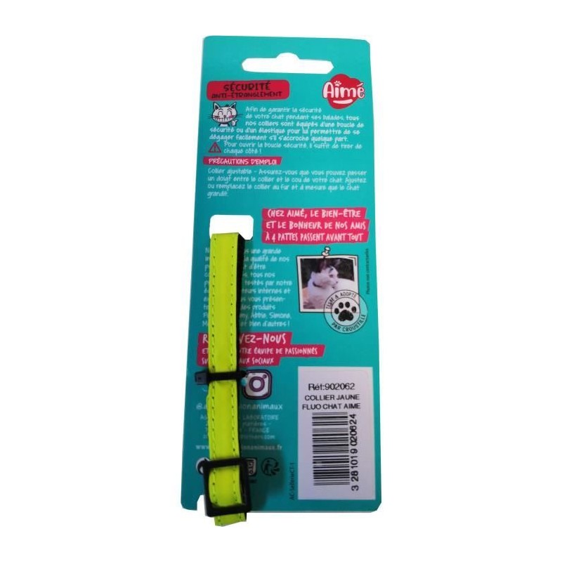 Le collier AIMÉ Jaune Fluo avec paillettes dorées est un accessoire lumineux et sécurisé. Ajustable de 18 a 28 cm, il dispose d'une boucle métallique repositionnable et d'un grelot argenté. Léger et souple, il met en valeur votre chat tout en assurant sa sécurité. Facile a nettoyer, il est idéal pour un usage quotidien.