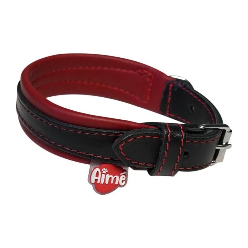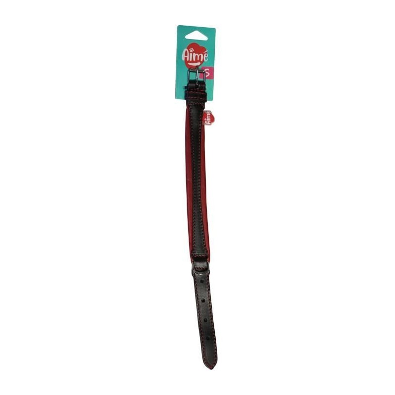 YAGO Black and Red Leather Collar Soft and Adjustable for small dog, size S 27-35 cm