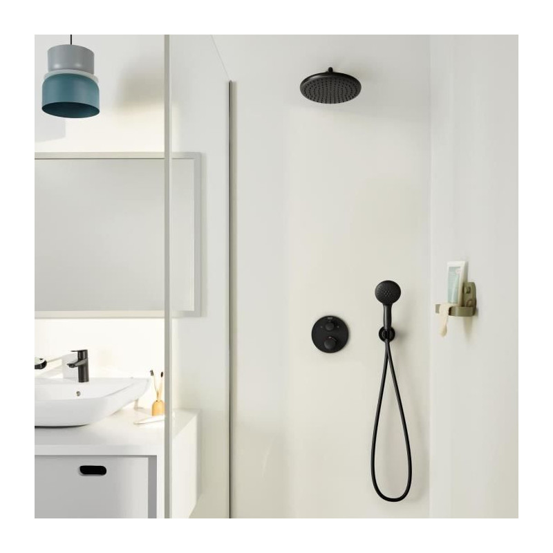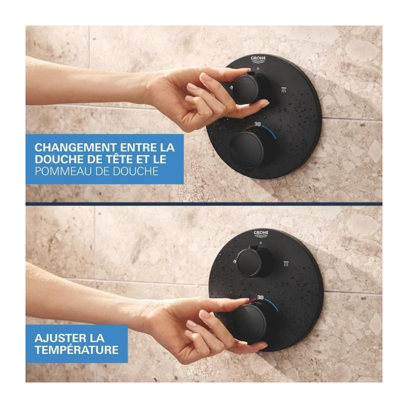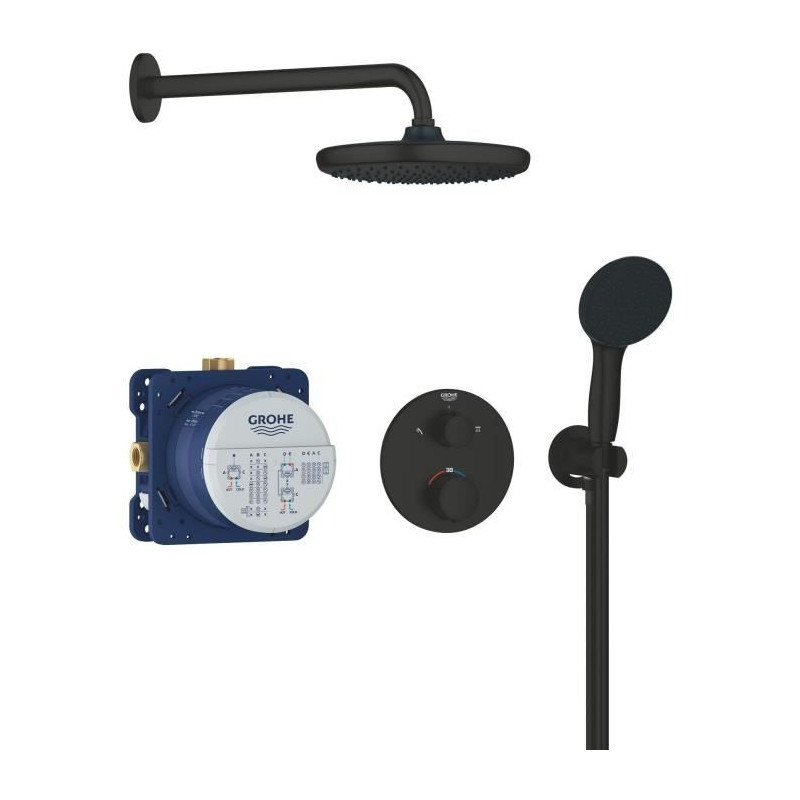 Ensemble de douche encastré - 1 + 2 jets - Mitigeur thermostatique - GROHE - 348832430 - Noir