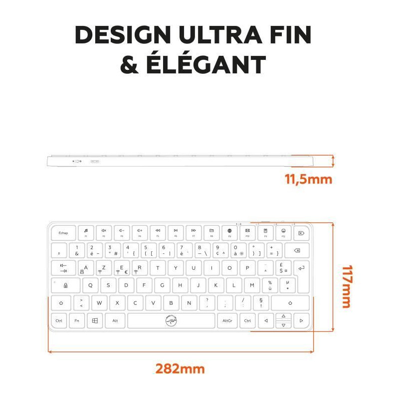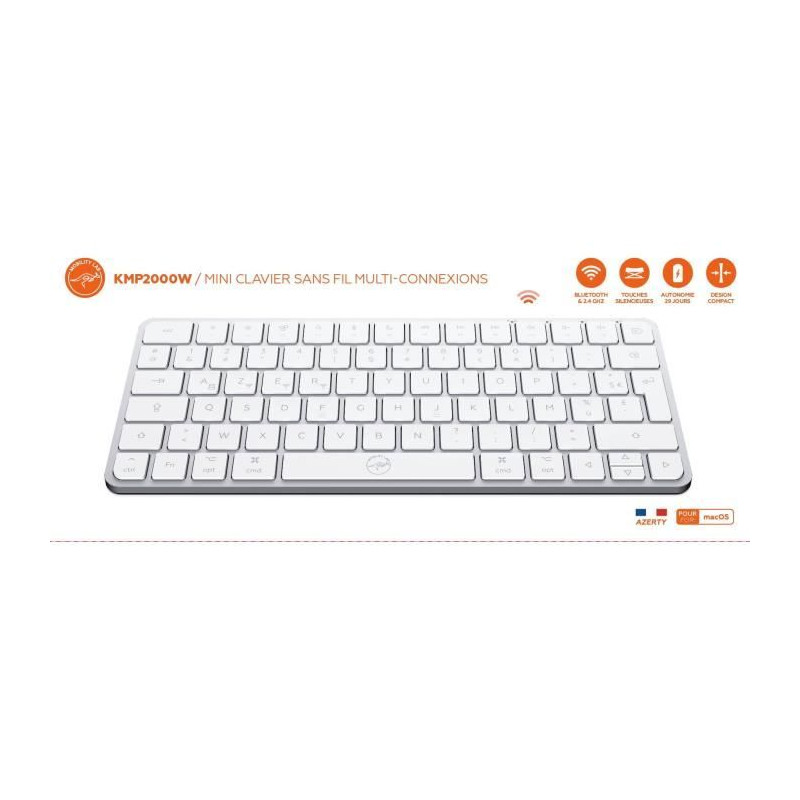 Mini clavier - Touches plates - MOBILITY LAB - KMP2000W - AZERTY - FR - Multi-connexions - Blanc