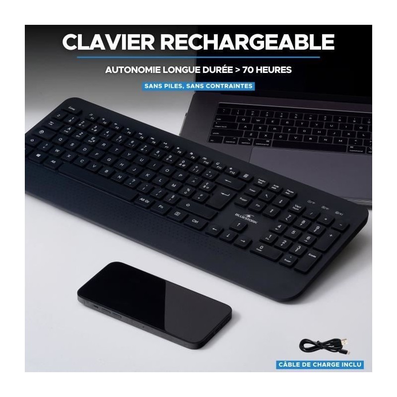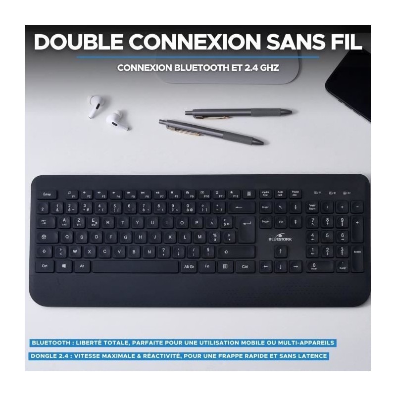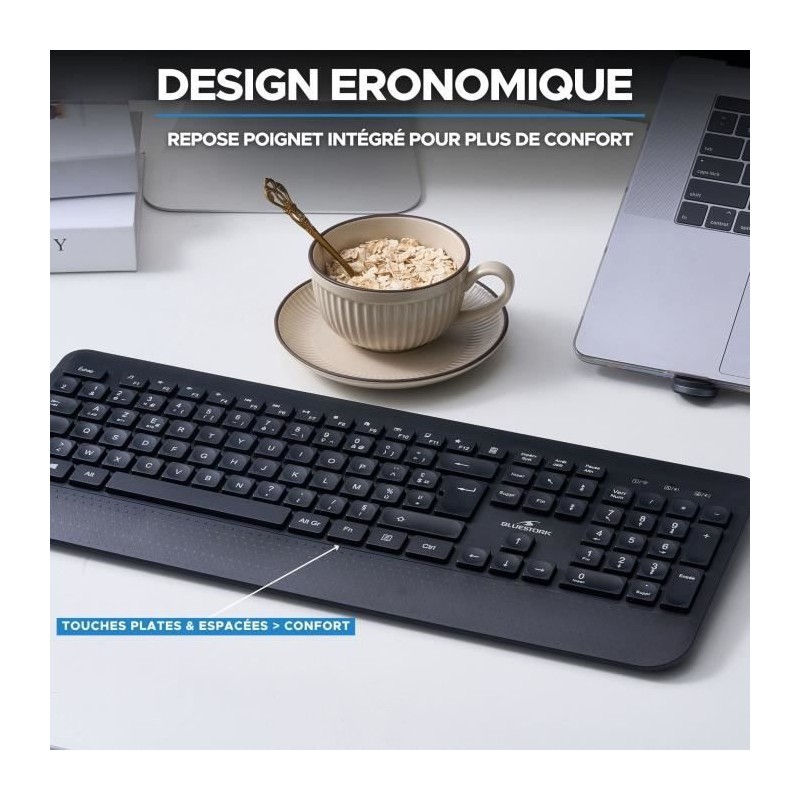 Clavier sans fil - Touches creusées ergonomiques - BLUESTORK - Office R2 - AZERTY