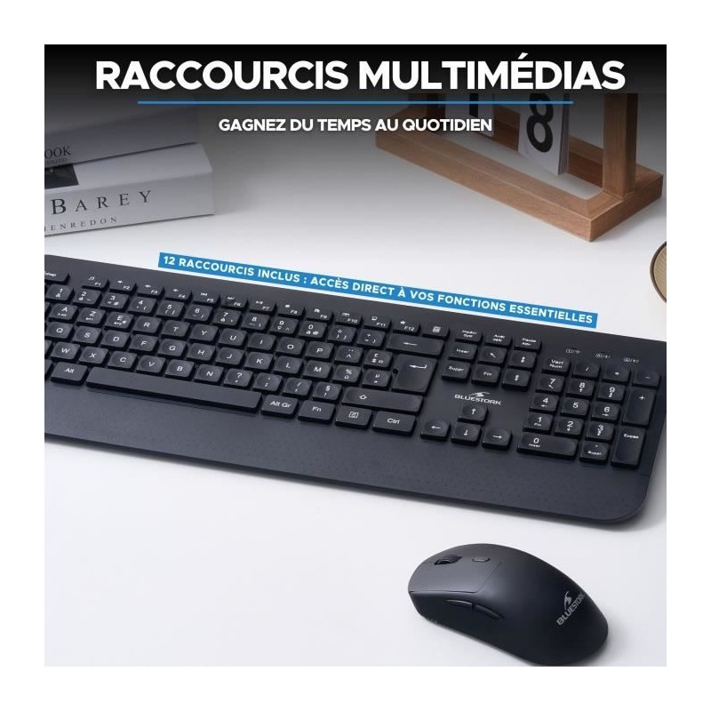 Le Clavier sans fil Bluestork Office R2 est conçu pour offrir un confort de frappe optimal au quotidien. Avec sa disposition AZERTY et ses touches creusées ergonomiques, il s'adapte parfaitement a la forme des doigts, réduisant la fatigue et améliorant la précision de frappe. Idéal pour un usage professionnel ou domestique, il permet de travailler dans les meilleures conditions. Sa connexion sans fil fiable offre une liberté totale de mouvement, libérant l'espace sur votre bureau et évitant l'encombrement des câbles. Grâce a sa technologie de transmission performante, la réactivité est immédiate, sans latence perceptible. Le mécanisme silencieux des touches réduit considérablement le bruit lors de la frappe, créant un environnement plus agréable, que ce soit en open space, en télétravail ou a la maison. Son design fin et élégant en coloris noir s'integre parfaitement a tout type de bureau. Points forts : Connexion sans fil stable et rapide Disposition AZERTY adaptée au marché français Touches creusées ergonomiques pour un confort prolongé Frappe silencieuse pour un environnement apaisé Design compact et élégant Que vous soyez en déplacement, en télétravail ou au bureau, le Bluestork Office R2 vous offre la combinaison parfaite entre confort, performance et esthétique.