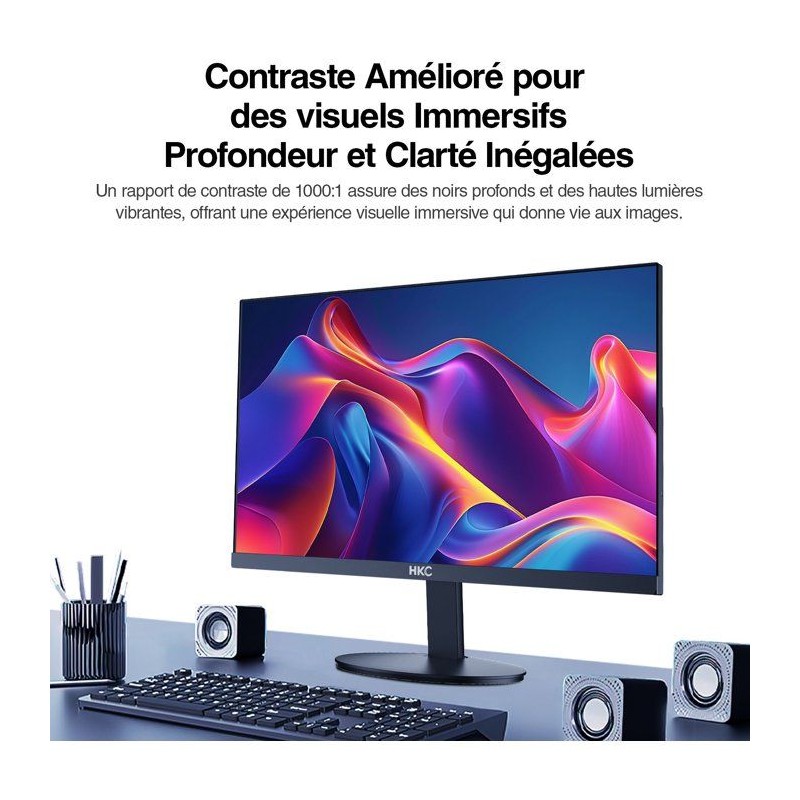 L'écran 27'' HKC V2718QS offre une qualité d'image exceptionnelle grâce a sa résolution QHD 2560x1440 et sa dalle IPS au format 16:9, idéale pour un confort visuel optimal. Son taux de rafraîchissement ultra-fluide de 144 Hz et son temps de réponse de 1 ms garantissent une réactivité parfaite, aussi bien pour le travail que pour le divertissement. Avec un contraste de 1500:1 et une luminosité de 250 cd/m², il délivre des images riches et précises. Équipé de 2 ports HDMI et d'un DisplayPort, compatible VESA 100x100, inclinable et doté d'un pied fixe, il s'adapte facilement a tous les environnements. Son design noir élégant apporte une touche moderne a votre installation.
