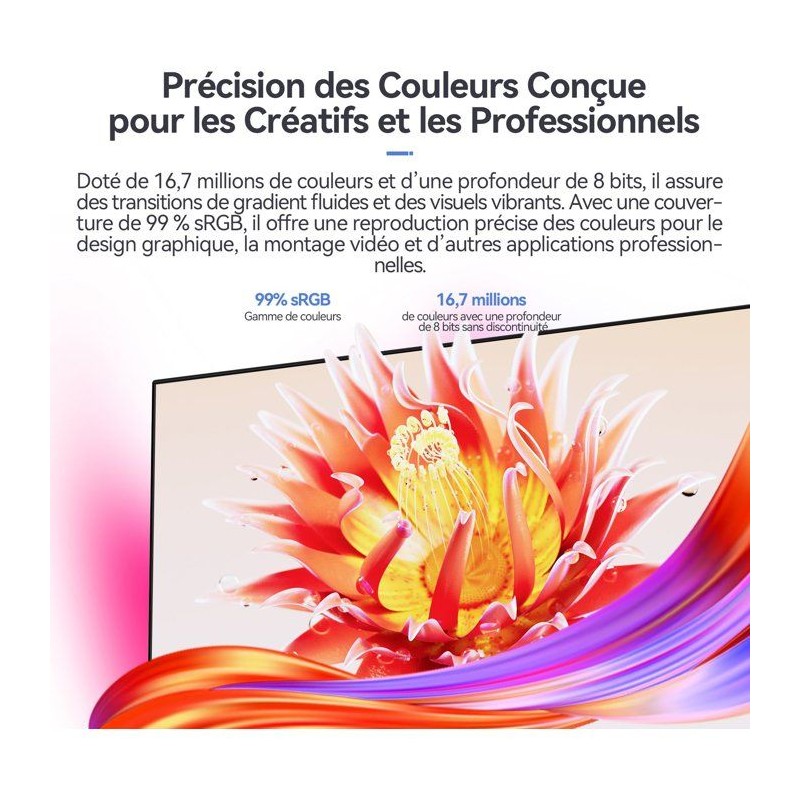 Découvrez l'écran 24'' HKC V2418S, un moniteur pensé pour offrir une expérience visuelle fluide, précise et immersive. Grâce a sa dalle IPS Full HD (1920x1080), profitez de couleurs éclatantes, d'angles de vision optimisés et d'un confort d'affichage idéal pour le travail comme pour le divertissement. Conçu pour la performance, cet écran propose un taux de rafraîchissement ultra-fluide de 144 Hz et un temps de réponse de 5 ms, parfait pour une navigation réactive et des animations sans saccades. Son contraste de 1500:1 et sa luminosité de 250 cd/m² garantissent une image nette et détaillée en toutes circonstances. Polyvalent, il dispose de connectiques HDMI et VGA, d'un support VESA 100x100 pour une installation simplifiée, et d'un pied inclinable pour adapter facilement votre angle de vision. Son design sobre et élégant en coloris noir s'integre parfaitement a tous les espaces de travail.