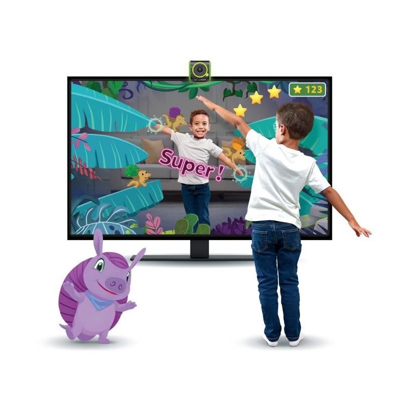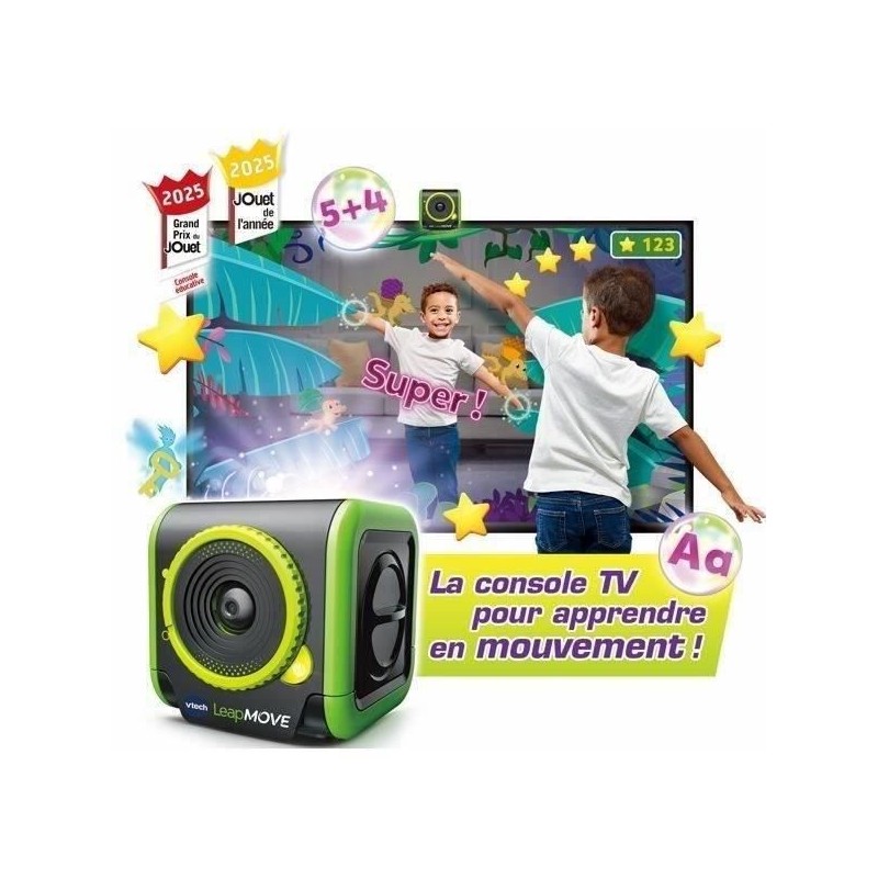 LeapMOVE - 4 - 11 ans Une console TV révolutionnaire et immersive pour jouer, se dépenser et apprendre de maniere ludique ! - Magique : Pas besoin de manette, la console capte les mouvements de l'enfant qui se voit a l'écran ou se transforme en personnages fantastiques. - Éducative : 25 jeux et aventures pour découvr