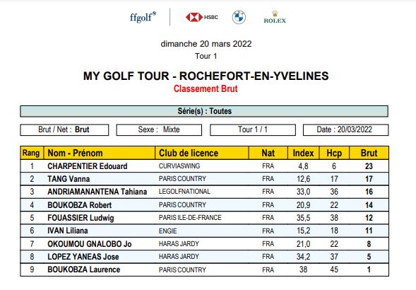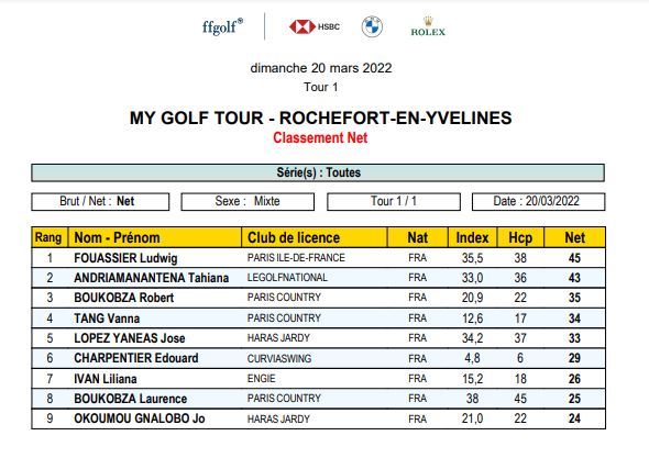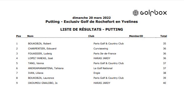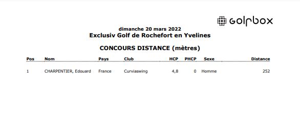 Results competition of 20 March 2022 - Rochefort-en-Yvelines