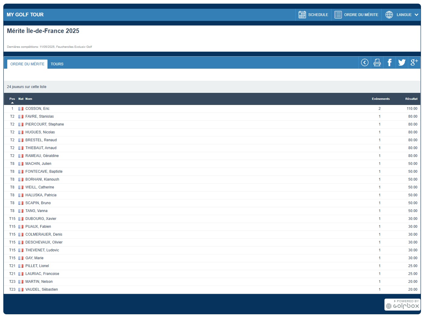 To validate this ranking, a minimum of ten players must score points in at least two events during the current season.