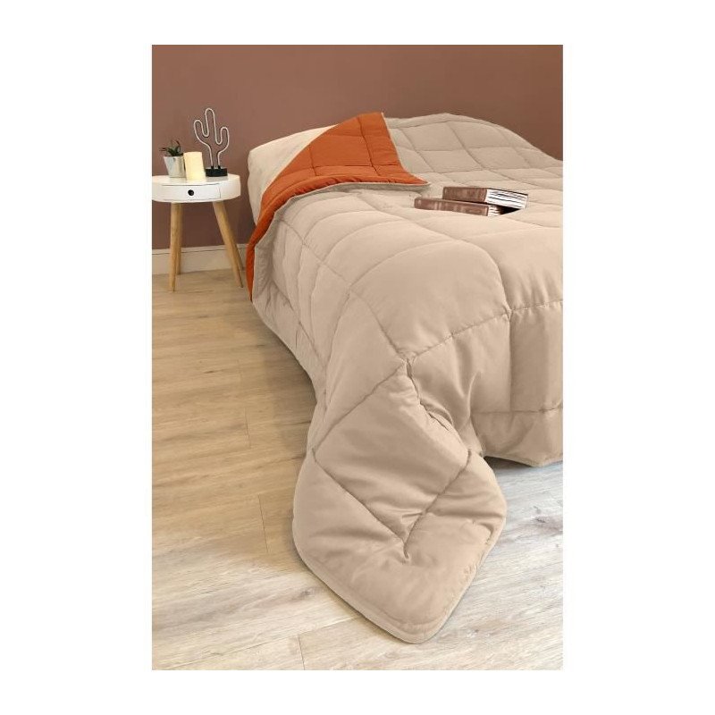 CALGARY Couette bicolore Gris galet et Marron gimgembre - 100% polyester fibres creuses siliconées pour un grammage de 400 g/m² - Dimensions : 140x200 cm - Enveloppe 100% polyester microfibre avec finition piquage carreaux - Garantie oeKO-TEX / STOPFLAM - Traitement ignifugé - Lavage a 40°C.