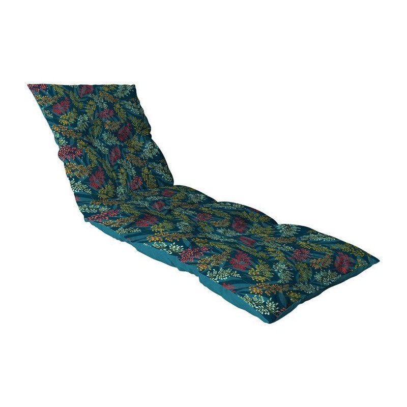 Coussin floconné pour bain de soleil en polyester/coton. Garnissage : flocons de mousse en polyuréthane.