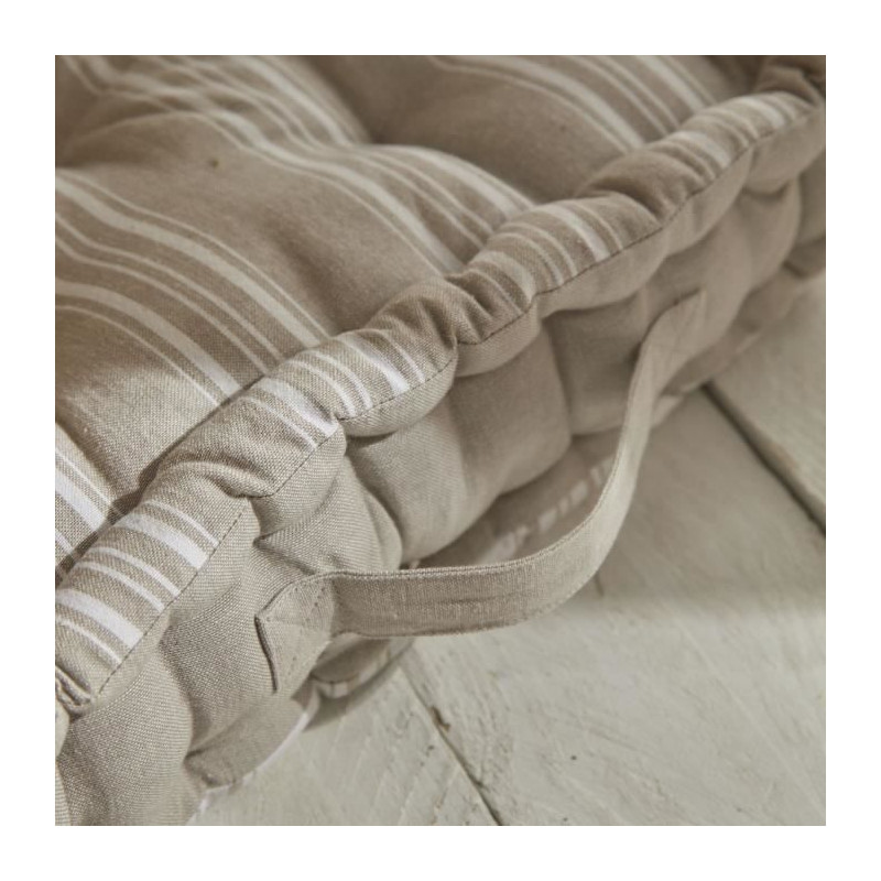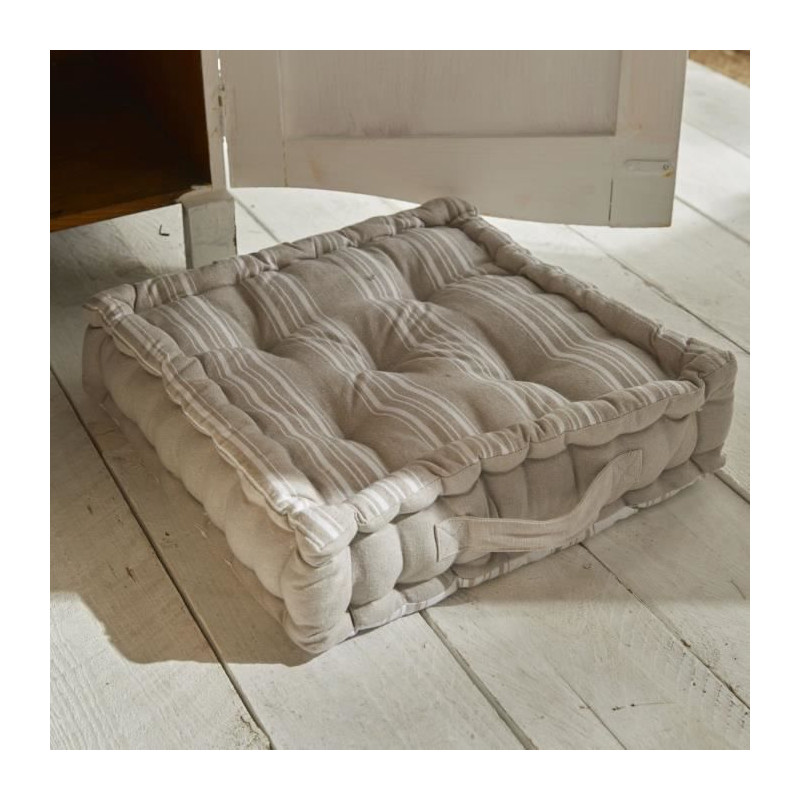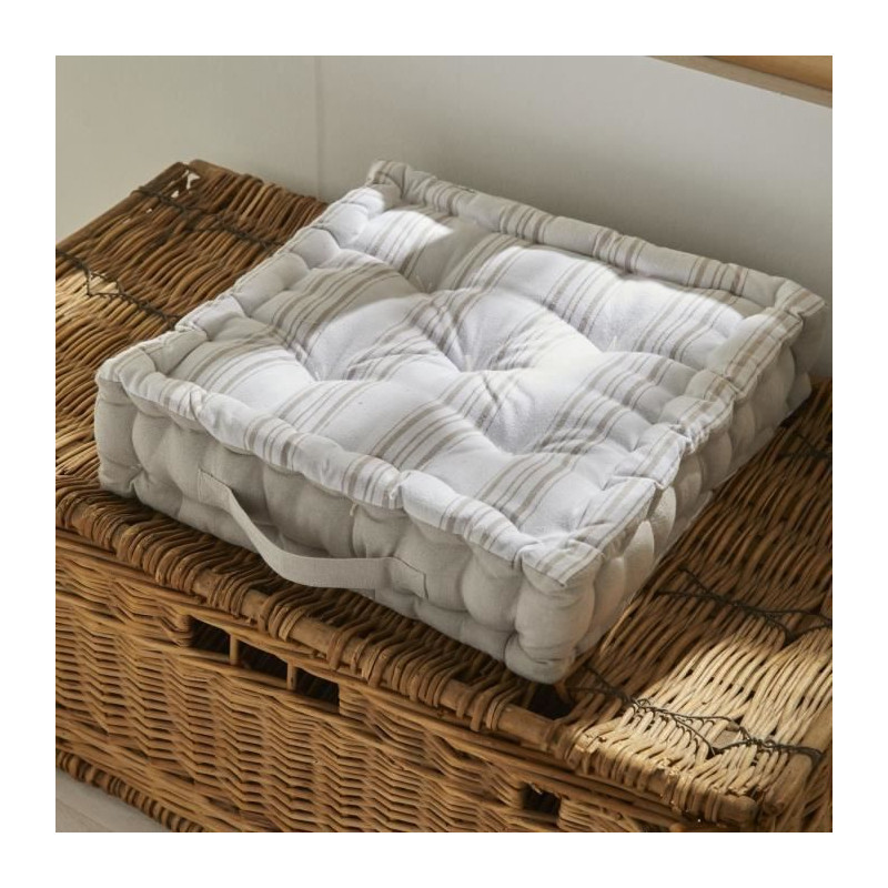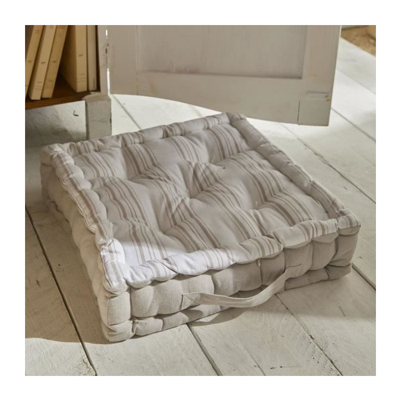 Apportez une touche d'élégance a votre maison avec le coussin de sol Charme de Today ! Ce coussin de 40x40x10 cm, avec ses faces rayées et sa poignée intégrée, est parfait pour ajouter une note raffinée a votre décoration. Sa composition en 100% coton assure douceur et naturel. Associez-le aux autres produits de la collection Charme par Today pour une décoration harmonieuse et élégante.