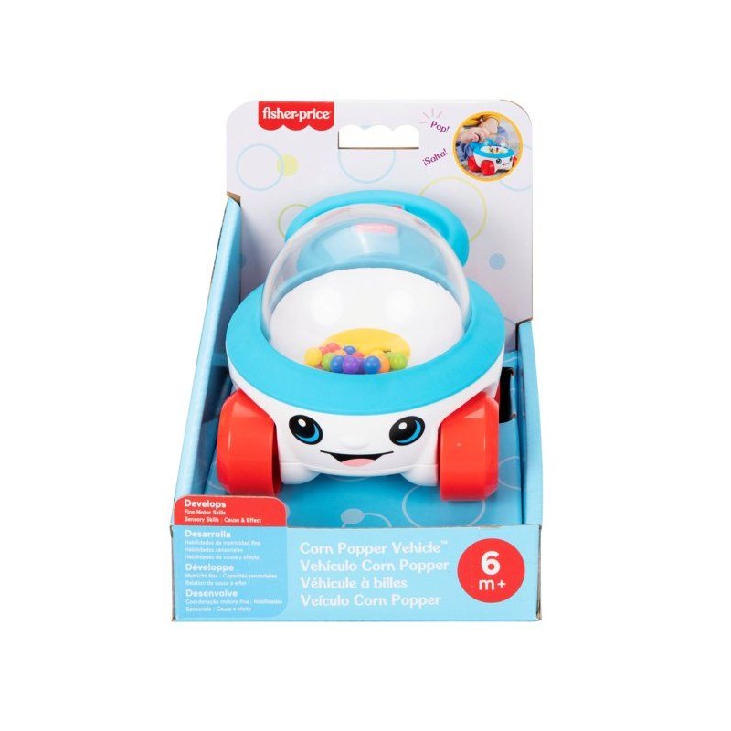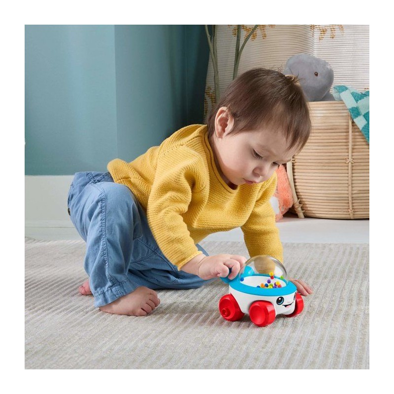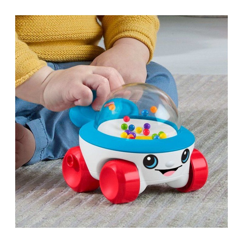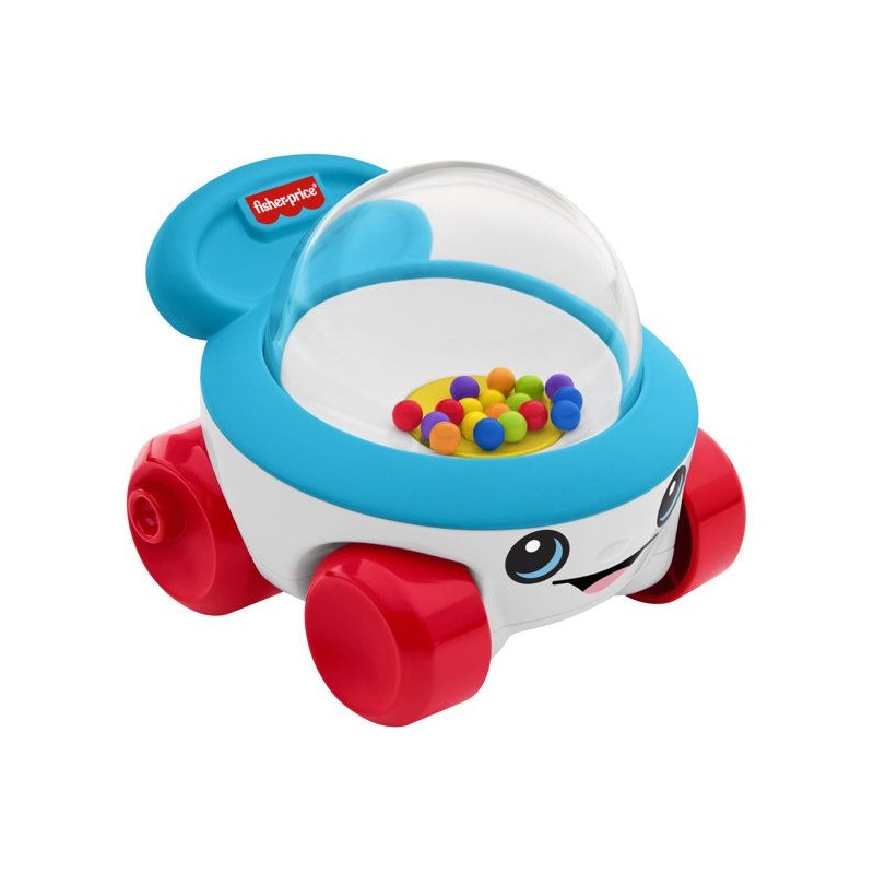 Véhicule a pousser avec billes rebondissantes multicolores. Poignée facile a prendre en mains pour bébé afin d'encourager le développement moteur.