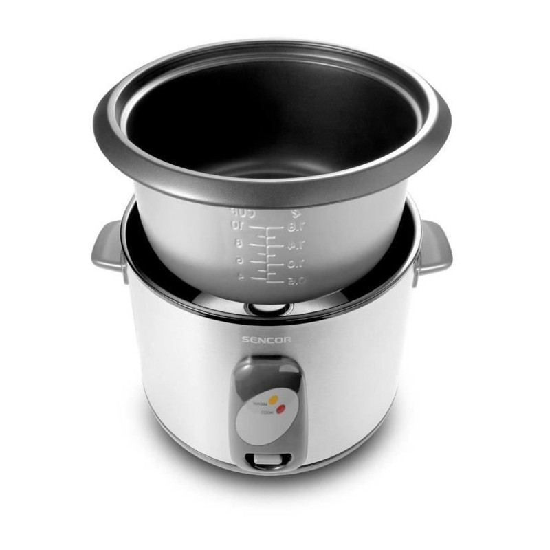Cuisseur a Riz Sencor SRM 1800SS - Marmite spéciale pour la cuisson du riz Fonctionne selon le principe de la cuisson a la vapeur Le corps extérieur est en acier inoxydable Volume 1,8 l (pour la cuisson de 1500 g de riz) Fonctionnement entierement automatisé Adapté a la cuisson de tous types de riz, y compris le riz a sushi Couvercle en verre avec une ouverture pour l'évacuation de l'exces de vapeur Pieds antidérapants Accessoires fournis : spatules spéciales pour le riz, verre doseur pour le riz et l'eau Puissance absorbée 700 W Dimensions (largeur x profondeur x hauteur) : 310 x 268 x 265 mm Poids : 2,3 kg Tension et fréquence : 220-240 V, 50/60 Hz