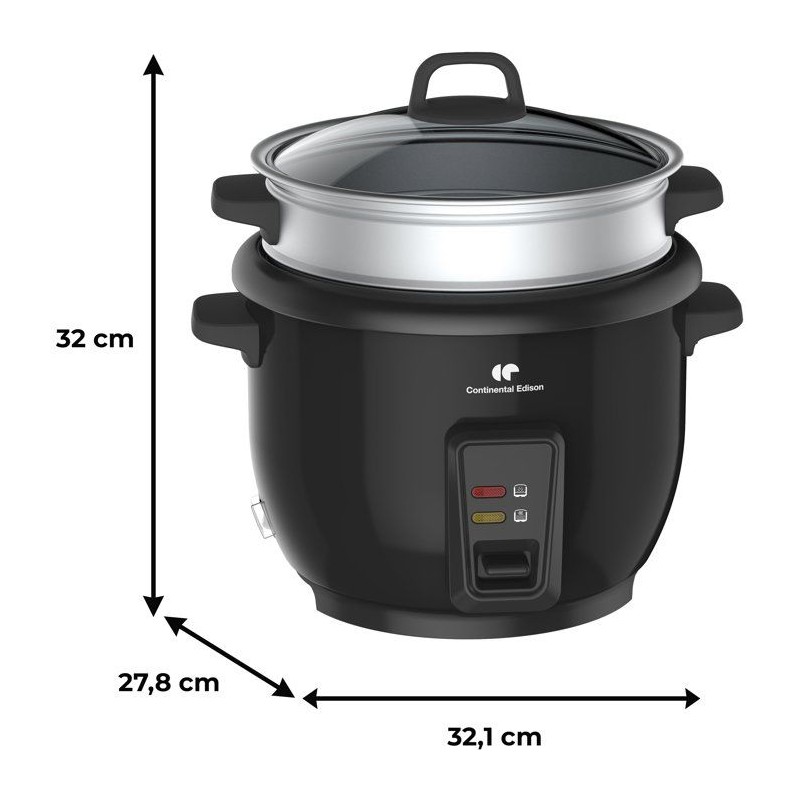 Cuiseur a riz - CONTINENTAL EDISON - CECR18B - 700 W - 1,8 L - Avec Panier vapeur - Fonction maintien au chaud - Inox