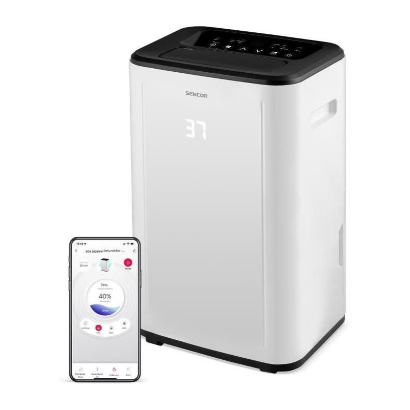 Le déshumidificateur Sencor SDH 3028WH est un appareil mobile intelligent qui élimine jusqu'a 30 l d'humidité par jour. Contrôlez-le via l'application Sencor HOME. Avec un réservoir de 6 l, il offre 3 modes de fonctionnement et convient aux pieces de 30 a 89 m². Fonctionnement silencieux a 43 dB, il est idéal pour un environnement sain.