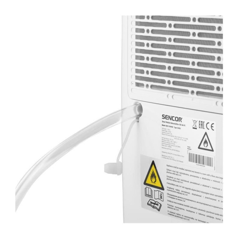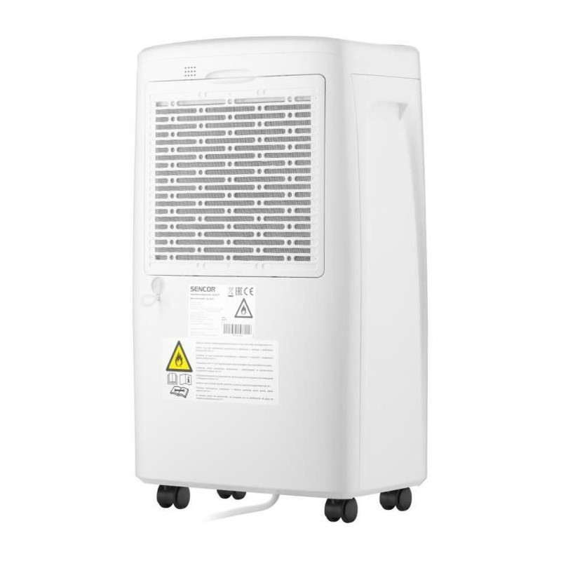 Le déshumidificateur SENCOR SDH 1028WH élimine jusqu'a 10 l d'humidité par jour. Avec contrôle via l'application SENCOR HOME, il offre 5 modes de fonctionnement, un réservoir de 1,5 l et un fonctionnement silencieux a 43 dB. Idéal pour des pieces de 18 a 35 m², il est équipé de fonctions de sécurité enfant et de dégivrage automatique.